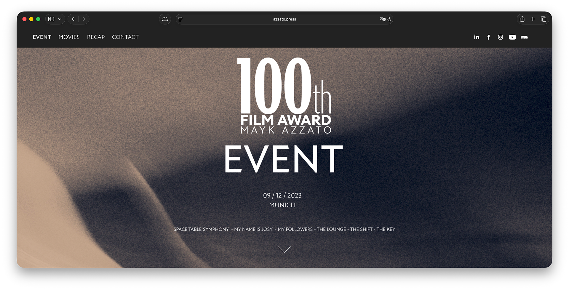Project Overview: Azzato.tv, the dedicated motion picture website of Mayk Azzato, required a complete website development along with continuous maintenance and updates. We delivered a full-service package to ensure a high-quality, functional, and up-to-date website.